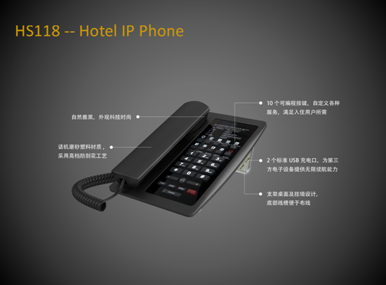 新款HS108-PS 超薄IP電話外觀精致,功能強(qiáng)大,可靈活應(yīng)用于不同場(chǎng)景,它具有更加強(qiáng)大的兼容性與拓展性,實(shí)現(xiàn)酒店通信與業(yè)務(wù)管理的融合,提高酒店管理與業(yè)務(wù)服務(wù)效率,為用戶提供更加便捷、舒適、安心的體驗(yàn)。