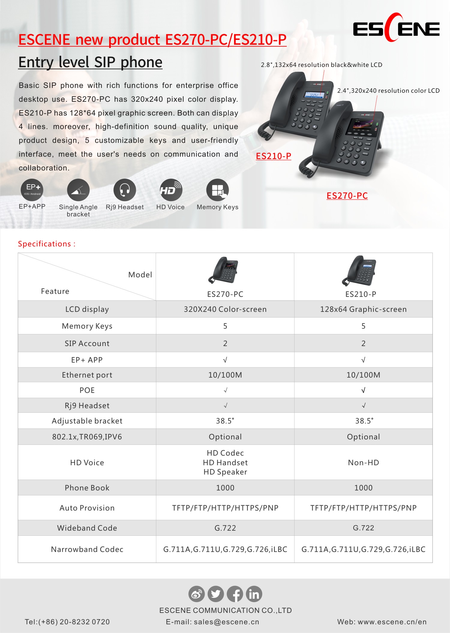 ESCENE new product ES270-PC/ES210-P entry level SIP phone